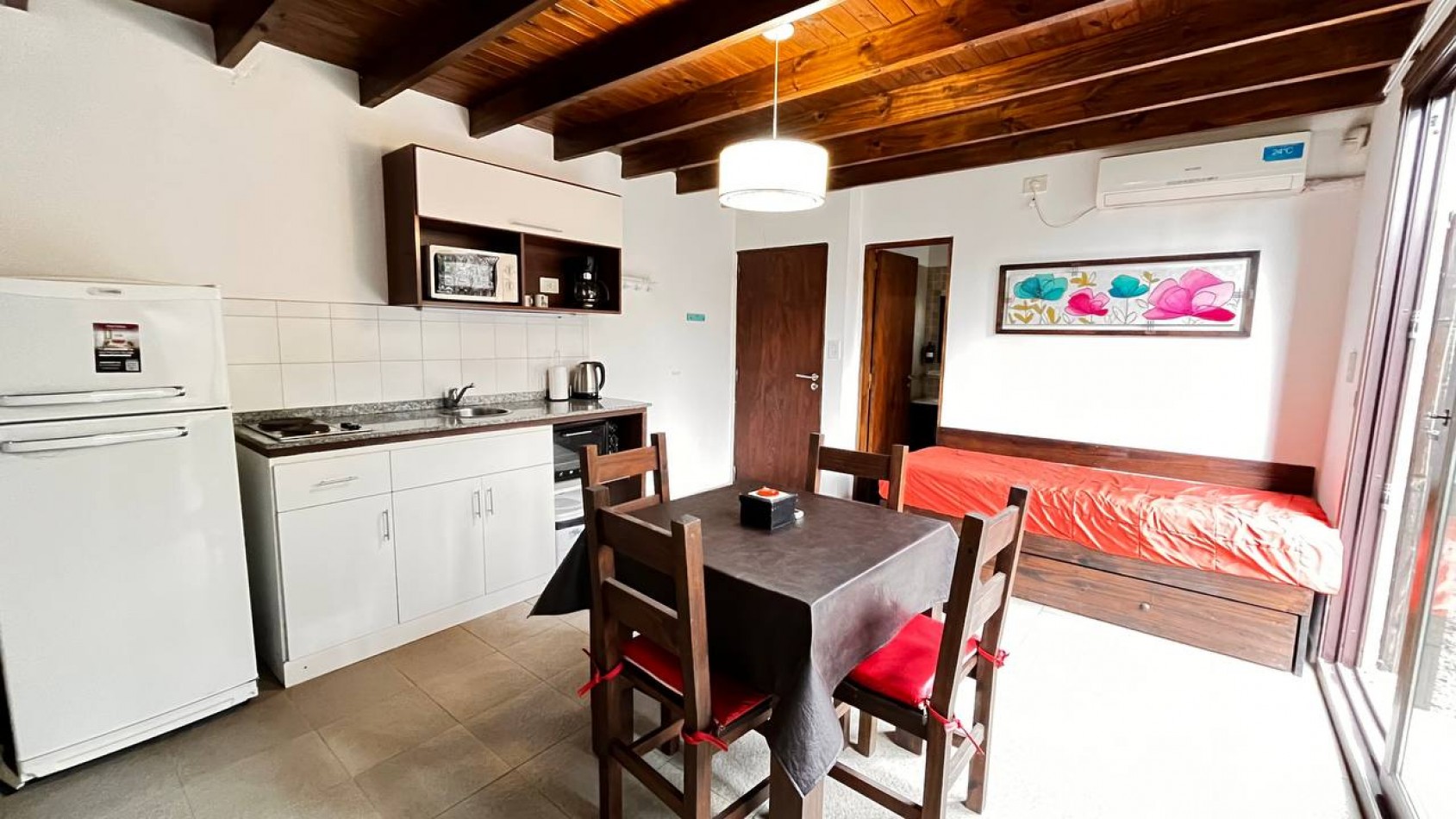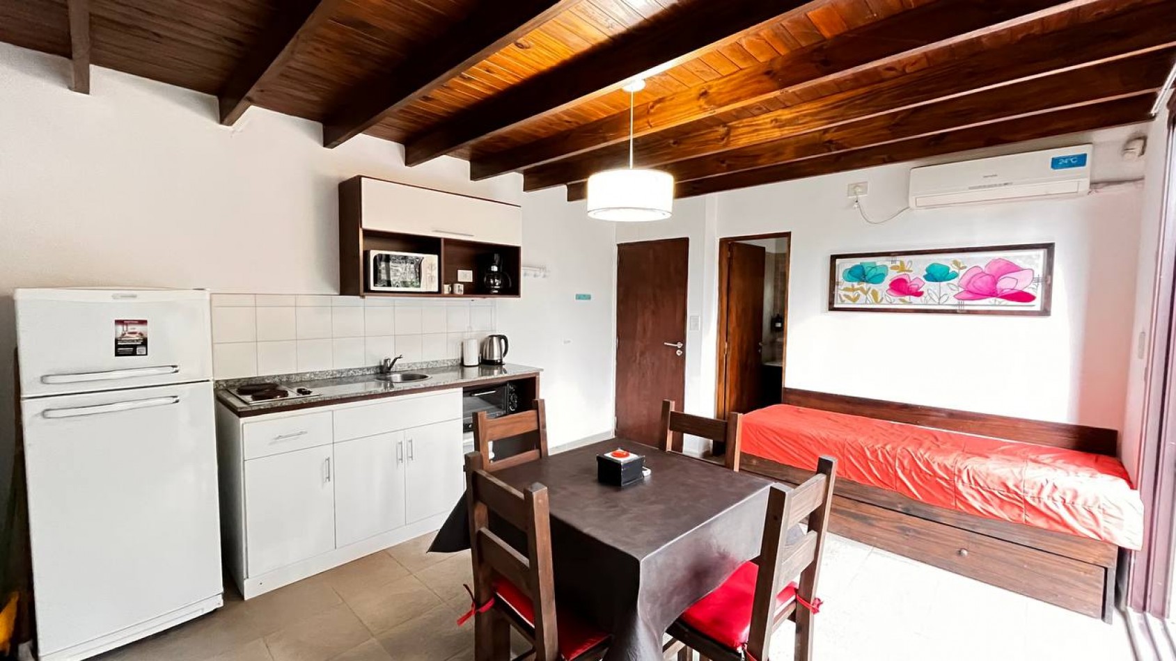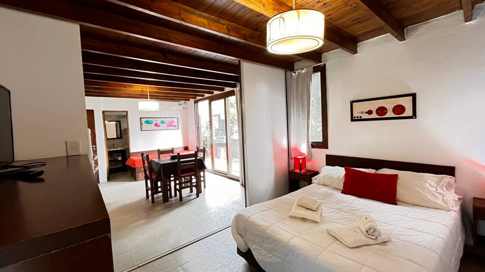 Dos ambientes con un amplio living con sofá cama de 1 plaza y cama carrito. Para cuatro personas.