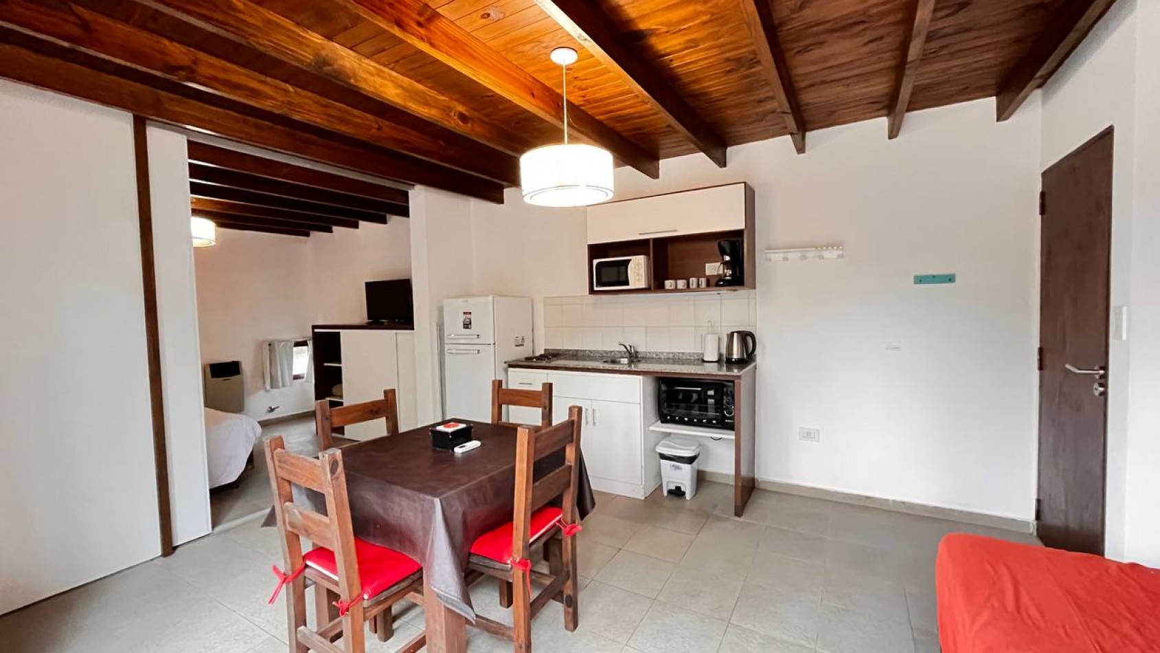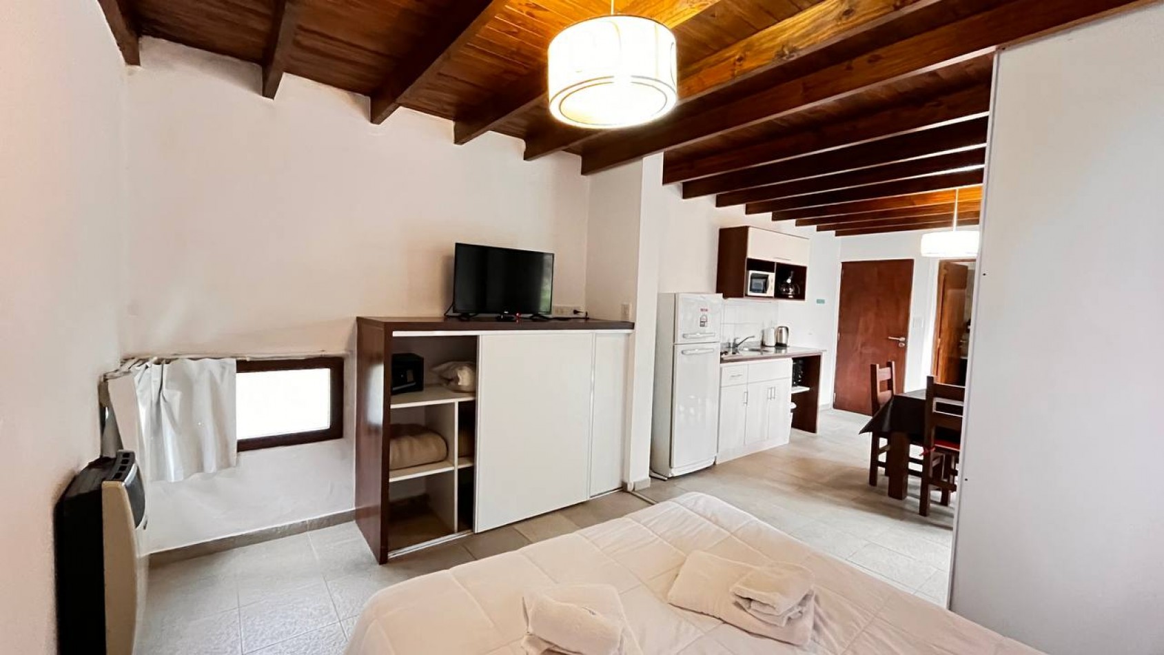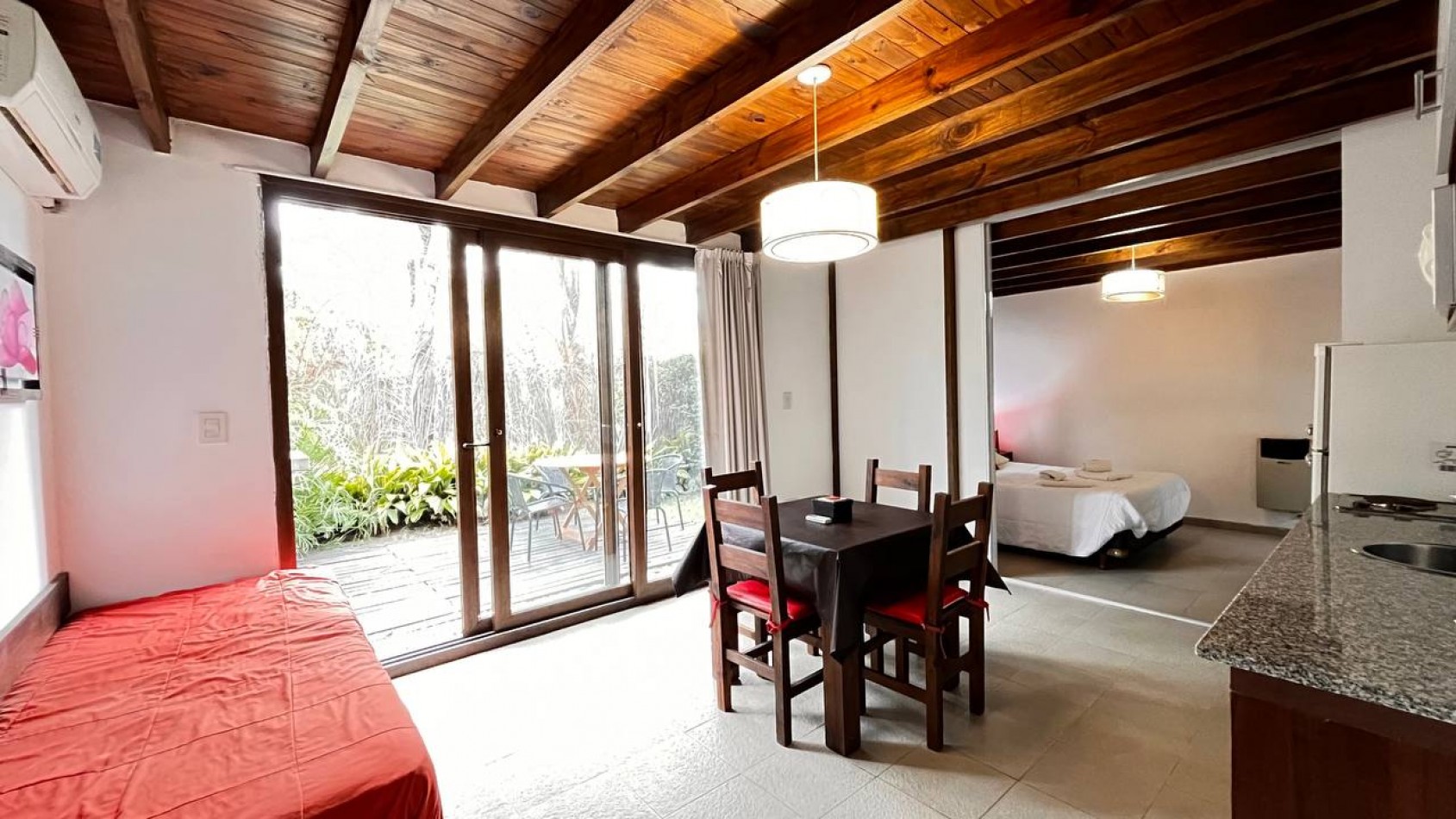 Dos ambientes con un amplio living con sofá cama de 1 plaza y cama carrito. Para cuatro personas.