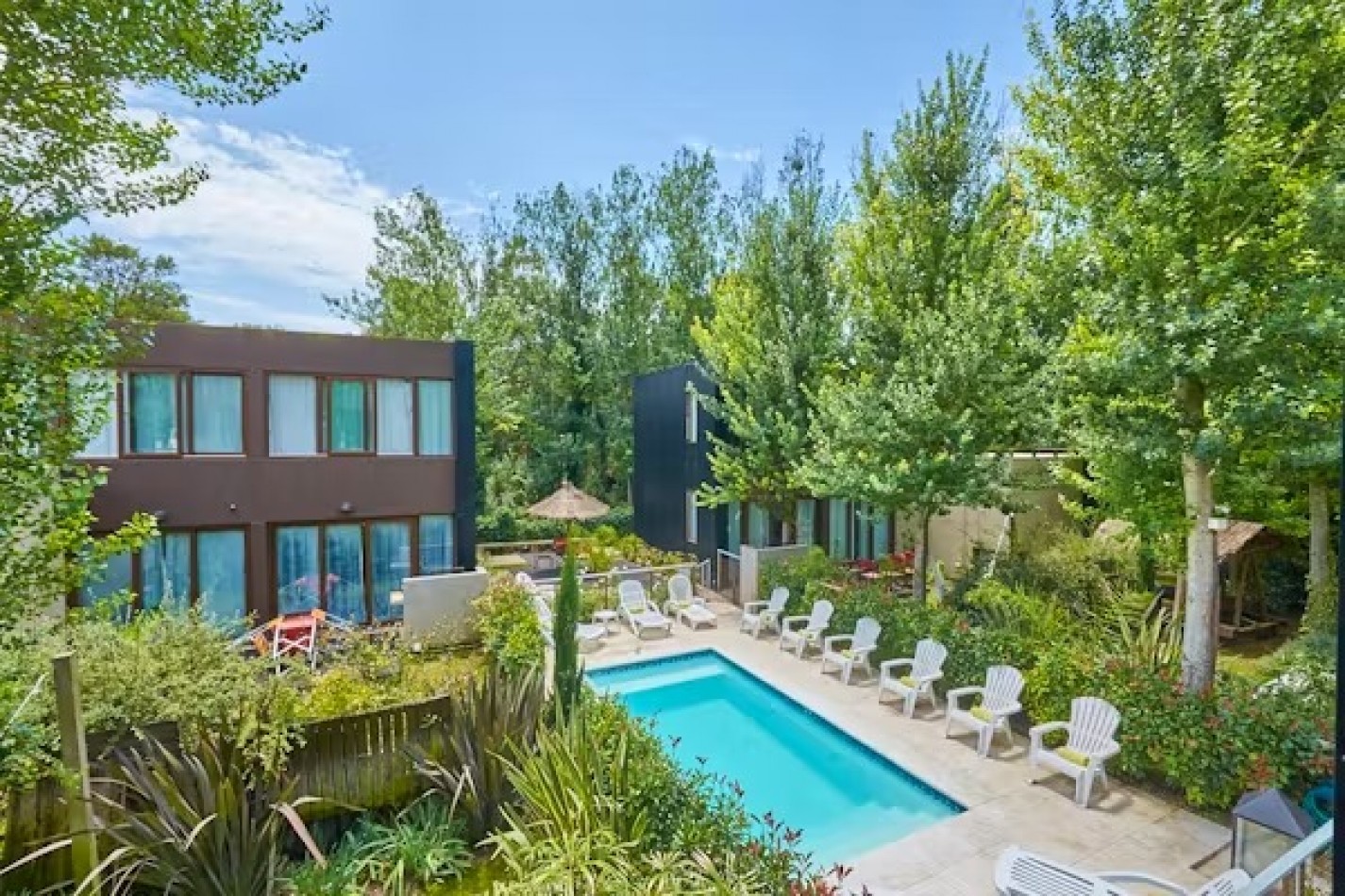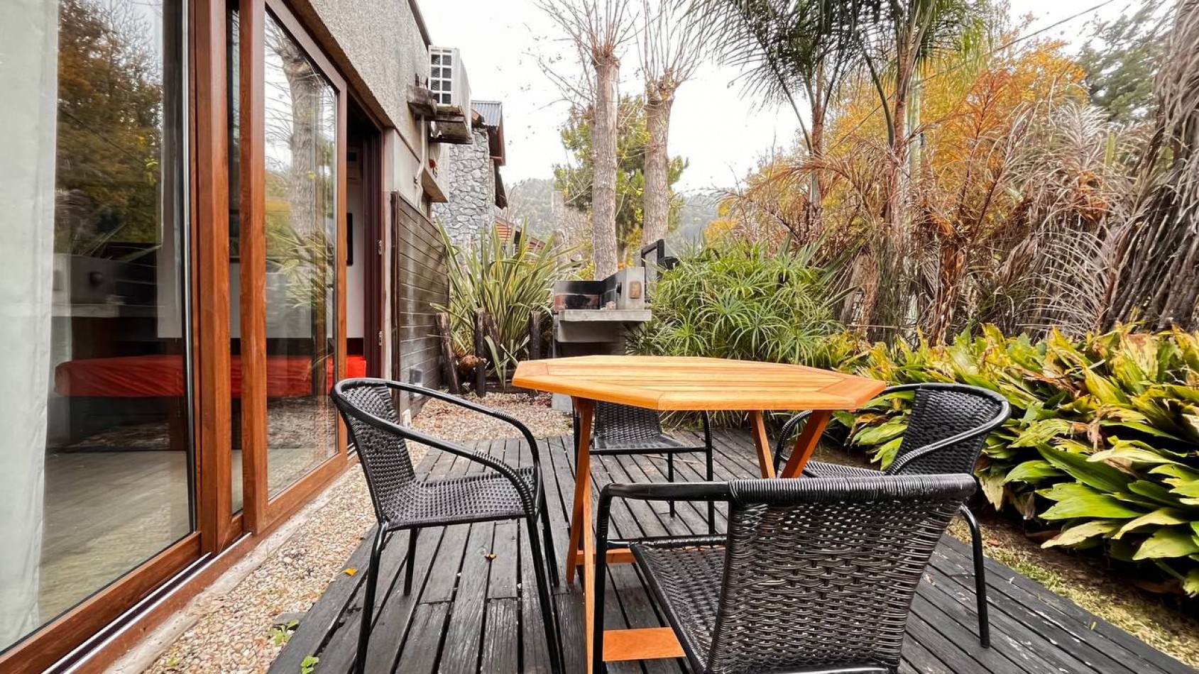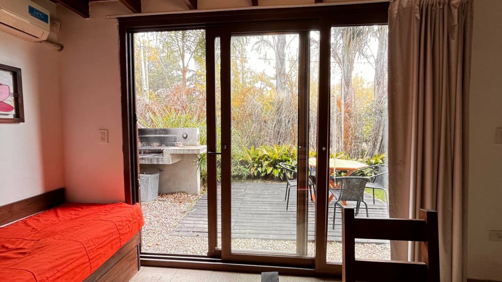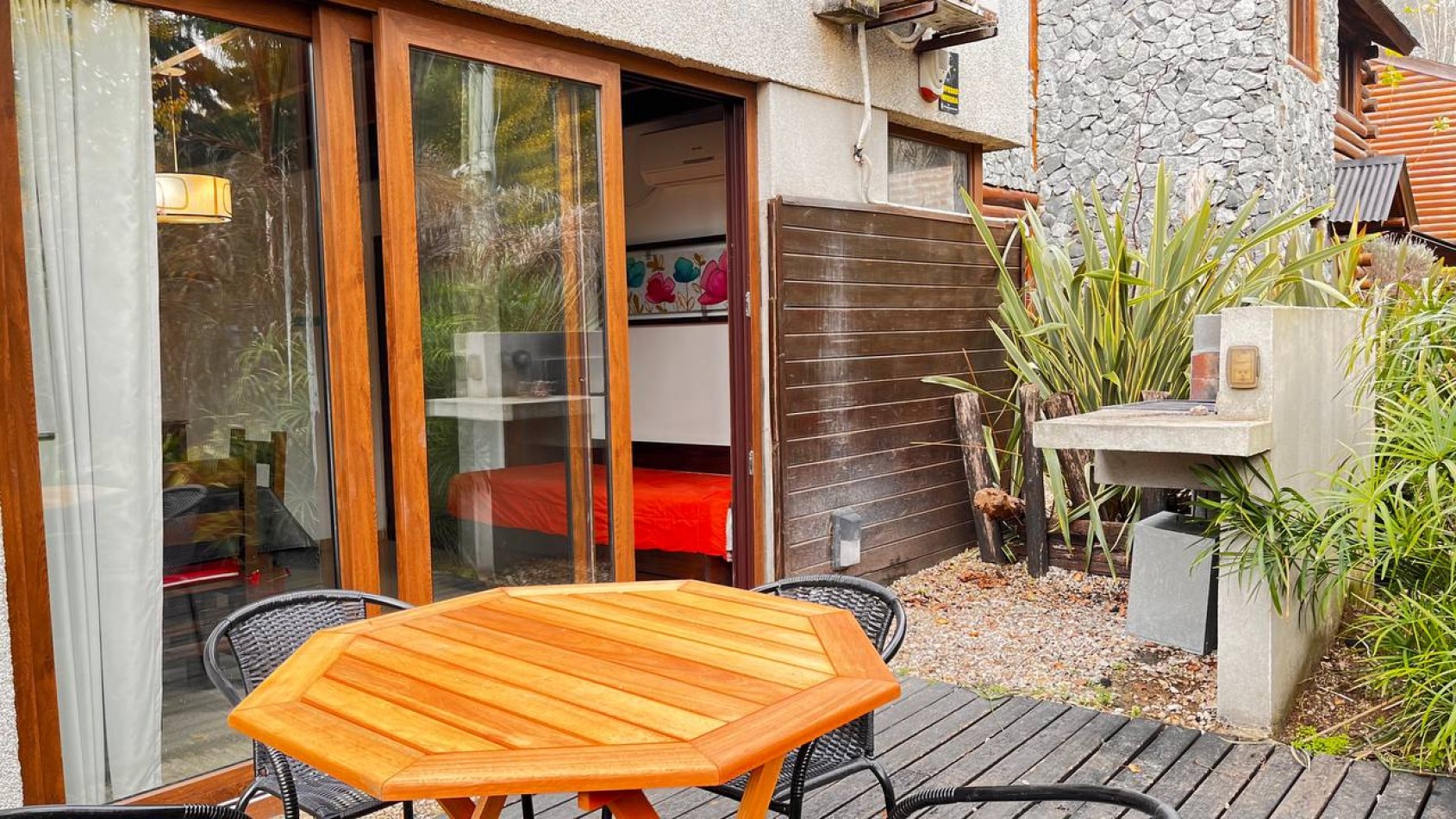 Cuenta con un deck con parrilla, mesas y sillas de exterior para disfrutar del entorno del jardín con álamos y pinos. Aire acondicionado frio calor en living