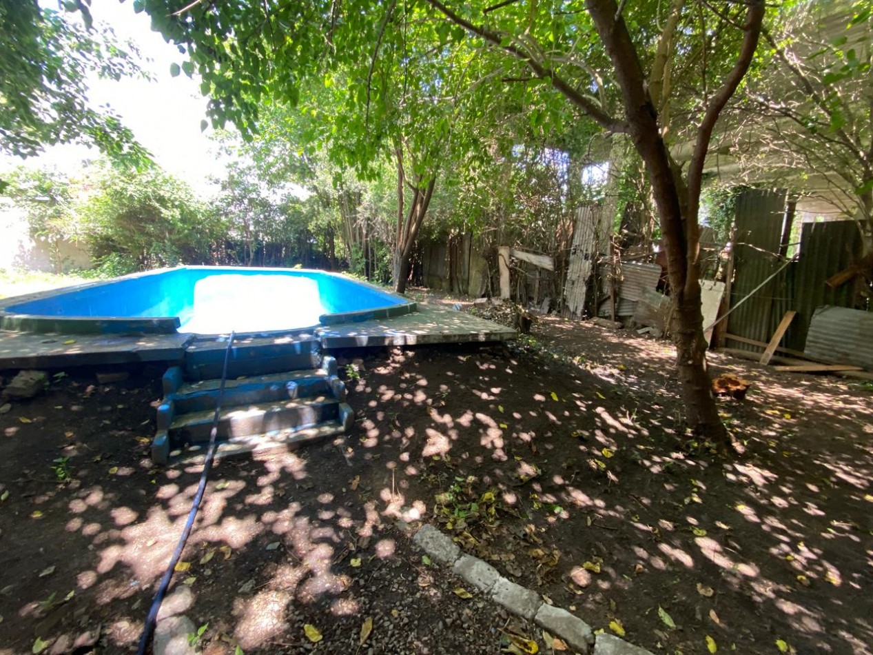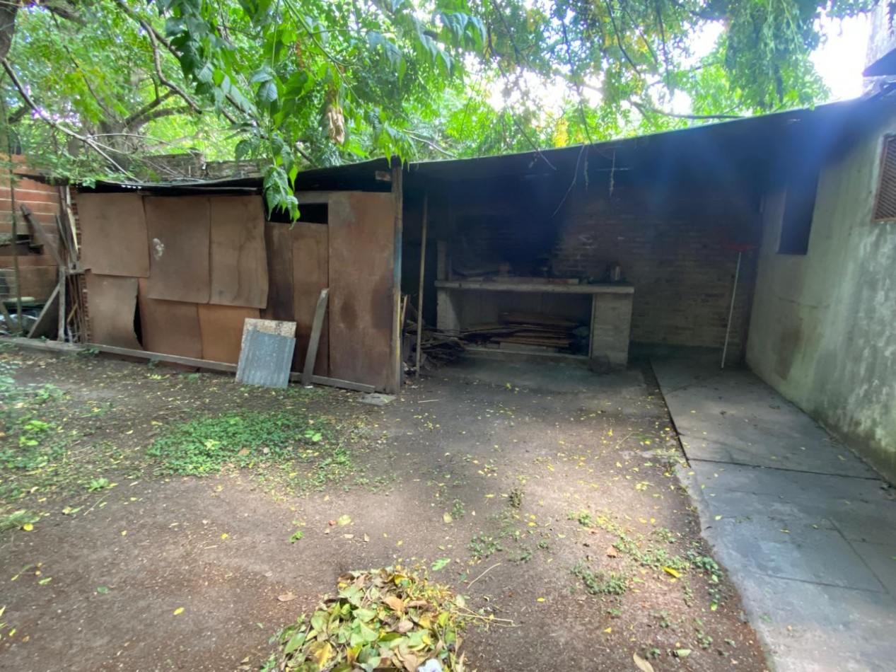 Cuenta con una propiedad a terminar de aproximadamente 8 x 8 m, con frente a la calle 1146, lo que brinda una muy buena proyección para vivienda principal o casa de fin de semana. En la parte trasera del terreno se encuentra una casa más añeja, un pequeño galpón y una parrilla, ideales como espacios complementarios o de apoyo.